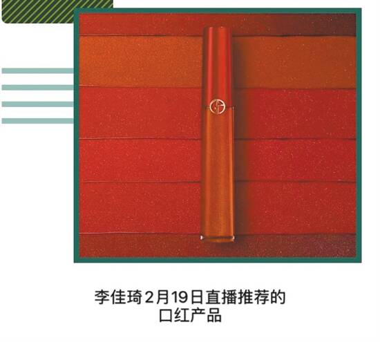 “口红一哥”李佳琦日前在直播中推荐了19款产品,其中日化产品有15款,彩妆品类仅有3款:一款眼妆产品与两款底妆产品,并没有口红产品;在随后的直播中,李佳琦推荐了21款产品,其中,护肤产品6款,眼妆产品1款,而口红只有两款。