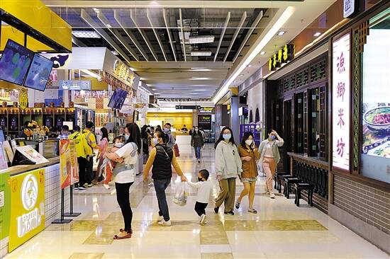 14日,正值周末,街上三两好友挽手闲逛,有说有笑,商超内虽未出现人挤人的情况,但人流量较一个月前也有明显增加。记者在惠州市中心商圈华贸新天地看到,不少餐饮店已经按餐饮工作指引,恢复限制性堂食,主要为轻饮食、工作简餐等。