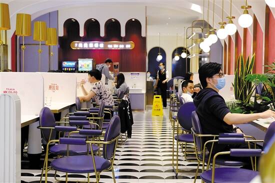 记者走访发现,像费拉拉、麦当劳等餐饮单位,顾客群体主要是年轻群体,恢复堂食后,食客“回流”比较快,11:00-13:00午餐时间和17:30-20:00晚餐时间,其所提供的就餐位基本满座。“从这两天情况来看,上门的顾客蛮多的,可惜的是就餐位有限。”费拉拉工作人员说。