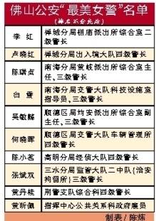 羊城晚报讯 记者郑诚、通讯员佛公宣报道:3月19日,佛山市公安局举行佛山公安“寻找最美女警”活动命名发布仪式,仪式上宣布了佛山公安“最美女警”评选结果。结合前期网络投票、群众评议、候选人事迹等综合情况,李红、陈瑞贞、吴敏懿、陈小茗等10人获评佛山公安“最美女警”荣誉称号。副市长、市公安局局长陈小坚、市妇联主席曾颖为获评女警颁奖。据了解,入选此次“最美女警”的有从警二十余年的警队“贤内助”吴敏懿,她来自佛山市顺德区公安局均安派出所。从警二十三年,她默默耕耘在政工、宣传、后勤工作的责任田上,既是民警眼中的知心管家,也是家属口中的治愈系导师。疫情来临时,她组建战时物资临时仓库,保障检疫前线安全运作;她记挂一线干警安全,每日穿梭各检疫点进行安全检查。“最美女警”中还有一位孩子眼中的“最美公主”,她就是南海公安分局交警大队科技设施室指导员白雪。在女儿心中,她是一心为“公”、刚毅自“主”的“公主”妈妈,也是绽放在战“疫”前线的铿锵玫瑰。她主动请缨到任务繁重的防疫联合检查站,做到“逢车必查、逢人必检”;她发挥技术优势,以科技支撑警务,参与开发南海电子通行证认证系统,打破数据壁垒使群众便捷出行。