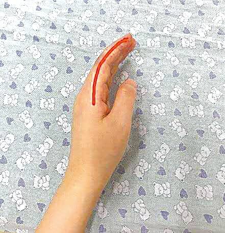 大肠经在宝宝的食指桡侧面。让宝宝手掌打开,暴露食指桡侧面,家长用食指和拇指捏住宝宝的食指,沿着食指桡侧面的大肠经从指根推到指尖,推的时候动作要迅速,每侧手指各200下,如果孩子年龄偏大,次数可以更多。