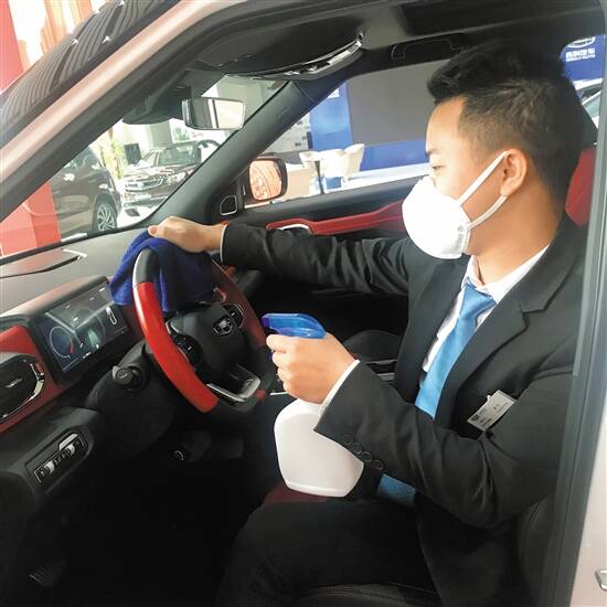 3月20日上午,笔者来到寮步一家吉利4S店,在刚消过毒的展厅,测量了体温的客户戴着口罩,在销售顾问的引导下,保持着间距看车、购车。