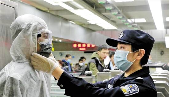 张思励为同事细心整理防护服