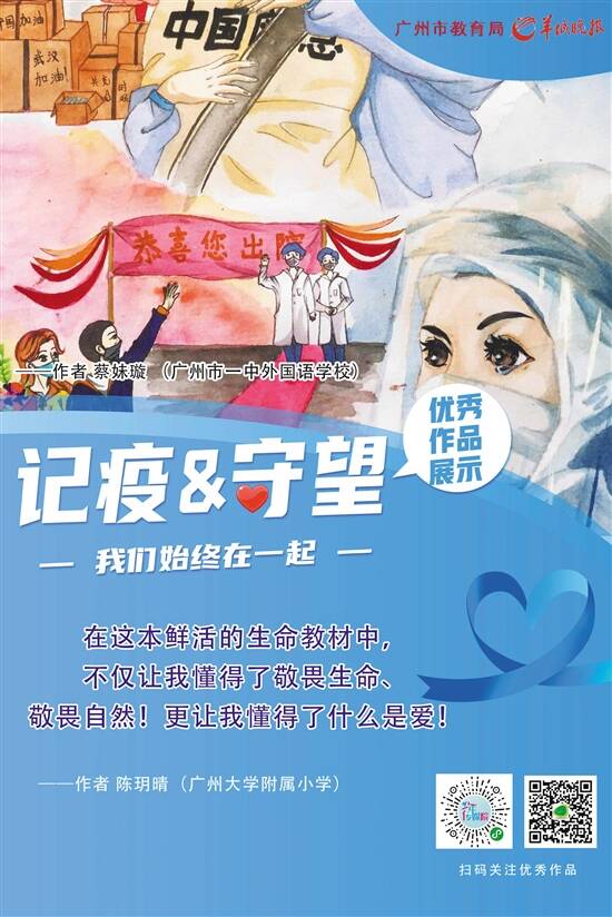 羊城晚报记者 蒋隽 通讯员 陈海云从送别到迎归,从记疫到守望!这段防控疫情的日子里,广州市的学子们居家上学的同时,也在用自己的方式致敬战疫中“最可爱的人”。近日,由广州市教育局、羊城晚报社联合主办,羊城晚报教育发展研究院承办的2020花地新苗作文大赛特别策划——“记疫和守望,我们始终在一起”征集活动完成评选,全市200名学生的优秀作品从上万份作品中脱颖而出。