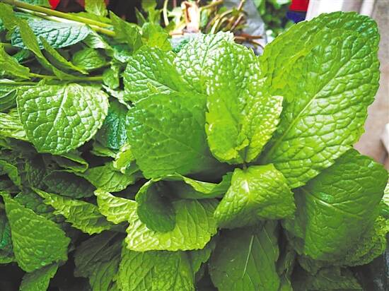 现在正是鲜薄荷叶上市的季节。薄荷叶味辛,有特有的芳香味,性凉,药食两用。能疏风、散热、辟秽和解毒,是临床上用于温病初起,宣表透邪的常用中药。