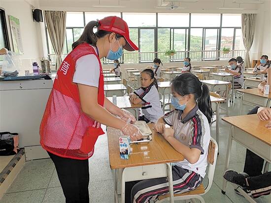 文/图 羊城晚报记者 余晓玲5月11日,东莞小学五六年级学生返校,5月18日,东莞全市小学一至四年级学生将返校,届时,小学生将全面返校复课。鉴于疫情防控的要求,校外接送站暂不能提供午托服务,东莞不少公办小学校内午托人数将大增,而很多公办小学没有配建学生食堂。学生的午餐成为学校亟需解决的问题。据记者了解,东莞南城、企石等镇街公办小学开始实行“中央厨房”集中供餐,其中南城的10所公办小学均选择“中央厨房”。