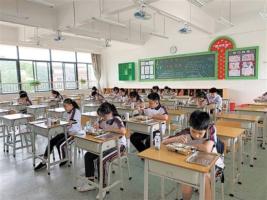 据南城阳光第六小学校长梁惠兴介绍,该校11日返校的五六年级学生共740多人,其中选择校内午托的学生230多人,18日一至四年级学生返校后在校学生人数将达2300多人,经过前期摸底,选择校内午托的学生数量将达到近900人。而去年下半年,由于只是试行一年级新生校内午托,当时选择校内午托的学生仅十多人。据梁惠兴解释,今年选择校内午托的学生数量增加主要有两个原因,一是学校将校内午托覆盖到全部年级,全校所有年级的学生均可选择校内午托;二是校外接送站在疫情之下暂停服务,之前选择在接送站午托的这部分学生有的会选择校内午托。