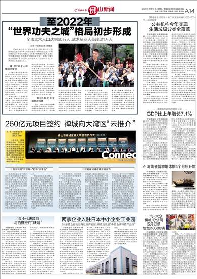 禅城区区长孔海文表示,禅城将加大城市更新改造力度,重点推动南庄凤翔湾、石湾东平片区、张槎聚锦片区、祖庙城北片区,谋划“一轴两翼三带”产业新布局,围绕季华路、禅西大道、东平河、汾江河科学布局,聚力打造先进制造业和现代服务业集群;以禅西大道为界,形成以现代金融业为引领的“禅东优质服务业”板块,和以泛家居、新能源汽车、高能激光等为骨干的“禅西高端制造业”板块;以及打造沿东平河创新产业带、汾江河大健康产业带和先进制造产业带。