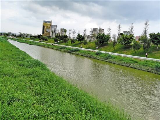 碧水绿岸的茅洲河凤凰段,一些市民在散步