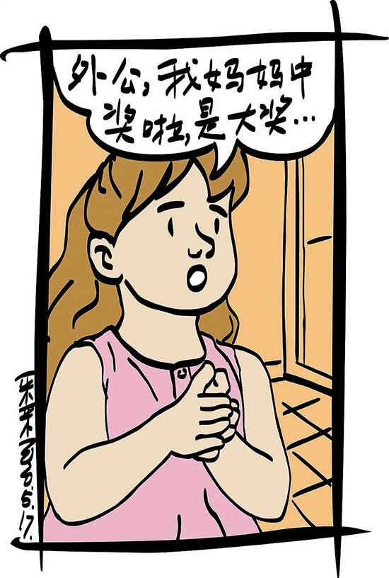 5岁的外孙女奶声奶气地说:“外公,我妈妈中奖啦!是大奖。舅舅也中奖了,也是大奖。”8岁的孙子说:“从去年开始,爸爸就天天研究彩票,后来,姑姑也跟着爸爸买彩票,不过,姑姑不研究,爸爸买什么号码,姑姑就跟着买什么号码。这次爸爸和姑姑买的彩票都中了二等奖。”