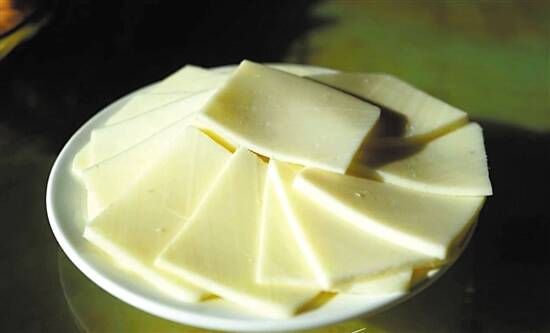 以蒙古族的一种奶制品为例,因为地处大草原,人们就巧用牛奶制成奶豆腐,一种外观白净如豆腐的甜点深受当地人喜欢。奶豆腐原料有牛奶、羊奶和马奶几种,经过凝结、发酵、切制而成,味道醇厚酸甜,奶味浓重,保质期相比液态奶大幅度延长,所以牧民们几乎家家户户都会做奶豆腐。奶豆腐放久后质地通常较硬,不宜直接食用,通常会蒸软或烤软再吃,或泡在蒙古奶茶里。