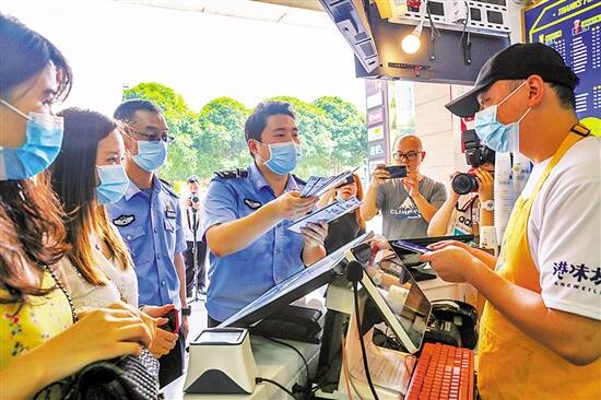 羊城晚报讯 记者郑诚,通讯员卢淳、李健斌摄影报道:“我的手机坏了但又急着收货款,借你店里的二维码给我收款可以吗?我给报酬。”面对陌生人礼貌的请求,且又有收益,作为店主的你,是帮还是不帮?6月10日,佛山禅城公安反诈益课堂走进祖庙商圈,模拟真实诈骗场景对商户开展防骗实测。“二维码诈骗迷惑性极强,教会大家如何防范才是重点。”6月10日,禅城公安反诈女警和反诈志愿者,特意假扮成诈骗团伙成员,来到祖庙商圈的百花广场、铂顿城、岭南站等商户较为集中的场所,针对近期出现的诈骗套路——“借用他人二维码洗钱”,随机寻找了多家商户开展防诈骗能力实测,检验广大商户的防诈防骗能力。