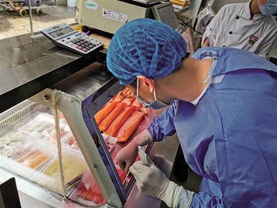 在采样监测种类上,包括三文鱼、黄花鱼、鲳鱼、虾、生蚝、沙巴鱼、扇贝、北极贝、鳗鱼、鲍鱼、蛏子、鱿鱼、章鱼、鸡肉、羊肉、牛肉、冷库、砧板、刀具、货架等。