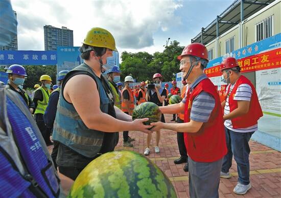 当天,双方党支部还开展了关爱建筑工友活动,为一线工人进行了安全教育,派送了安全知识手册,派发了慰问品。同时,组织党员先锋队和青年突击队进行了宣誓。
