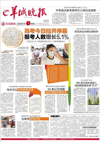 东莞市教育局公布的数据显示,东莞今年中考报名人数5.8万,较去年5.2万增加了0.6万。
