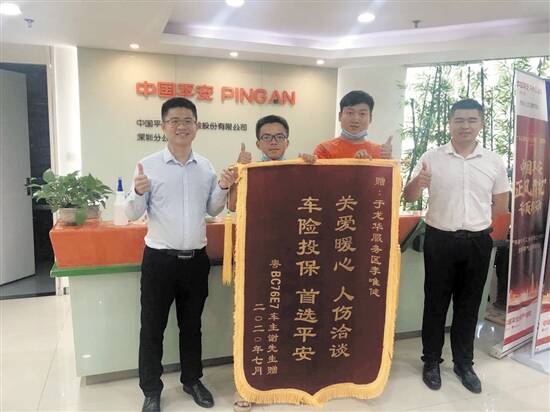 为了表达谢意,谢先生特意制作了一面锦旗,专程送到平安产险深圳分公司,以给查勘员李唯健一份“惊喜”。