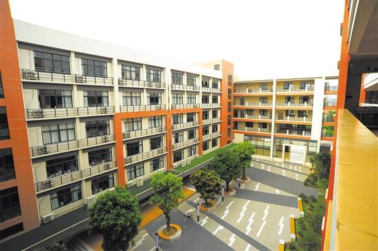 从广州珠江新城驱车1.5小时,就到了位于江门市蓬江区杜阮镇南田东路97号的广大附中江门广德实验学校。这所学校由广州大学附属中学与江门市高进教育实业有限公司联合创办,是一所涵盖小学部、初高中的封闭式全日制寄宿民办学校。因为离广州近,又是广大附中教育集团分校,很多广州学生慕名而去。据了解,广德实验学校学生中,广州生源占70%以上。