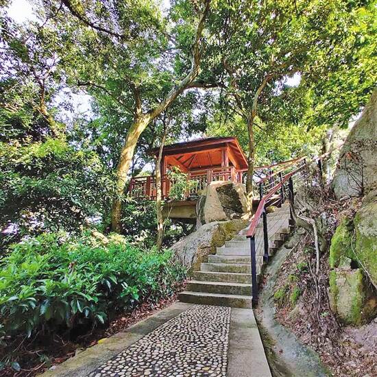 据介绍,这个社区公园紧贴九洲港,远眺港珠澳大桥,公园青山绿水,环境非常幽静雅致,园内主要设施有木栈道、跌水水景、网球场、月亮泉、休闲平台、水系木栈桥、自然溪流、登山石阶、山顶水广场、水景墙、观景亭、山顶望海亭、观景平台及监控设备等。