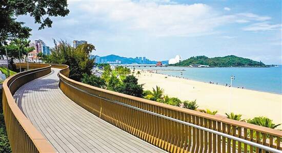 为了使望海亭重拾活力,去年12月,经过修复的望海亭重新开门迎客。粉刷一新的白色外墙、争奇斗艳的红花绿叶、方正开阔的观景平台……经过数月的提升改造,望海亭面貌焕然一新。而今年开放的望海亭空中栈道更宛如一条优美的飘带,将香炉湾醉人美景串联。水清沙白、椰影婆娑,勾勒出浪漫之城珠海的幸福轮廓。