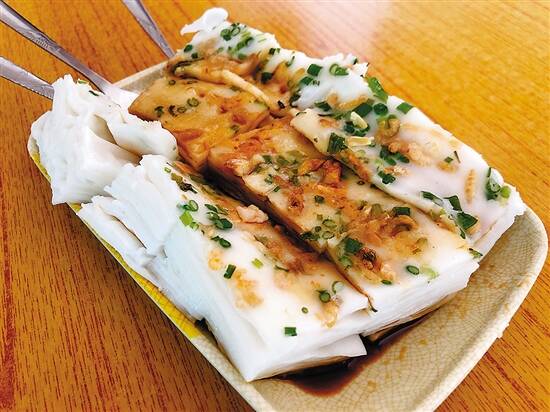 虾米糍光听名字也许会以为是一种糯米的糕点,但其实它更偏向于广东的肠粉,是斗门人最爱吃的早餐之一。