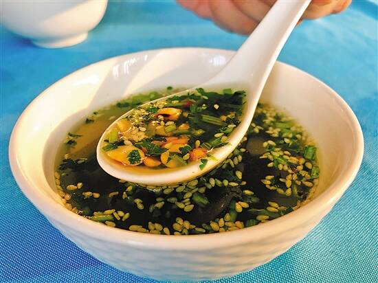 据悉,客家咸茶最早在斗门的发源地是白蕉镇,从清乾隆年间开始盛行,摒弃了传统擂茶中的荤食,保留素食部分,并不断地发展其特色。这道客家咸茶的风味美食制作用料并不复杂,只要先把水煮到有少量气泡沸腾再改为温火,按适量比例放入绿茶;炒好芝麻花生,切好芫荽或生菜混上少许油盐,用刚刚的茶水调制,一道咸茶便可制成。