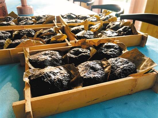 在虾山大院,巧妇们也为羊晚旅游达人手工制作了艾糍。艾糍的皮是一个浓浓的艾草香味,吃下去感觉到真材实料,与普通餐厅吃到的艾糍相差甚远。馅是花生椰丝,甜度适中,混着艾草的味道焕发出一种和谐的魅力。