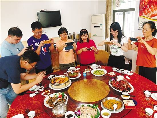 羊晚“霸王餐”美食团的吃货们争相拍照
