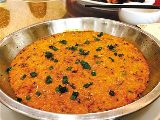 印象深刻的美食介绍几个。乾务炒藤鳝,一口咬下去,藤鳝肉口感结实、爽脆,没有丝毫肥腻。将盘中的姜片与鳝片夹在一起吃,味道独特,我给满分!特色蟛蜞糕,只看颜色就很惹味,色泽金黄,些许葱花点缀,味道很鲜。据说一年只有这两个月蟛蜞才产膏,而且100只蟛蜞才能挑出这么一盘,就冲这个怎么都要再来斗门!砵仔焗鱩饼,这鱩肉和蚬肉差不多,把它与猪肉剁碎搅拌而成,从而将鱩肉的咸水味减弱,但又不失淡淡的海味,非常下饭,口感不松不韧,让人回味无穷。凉瓜炆黄鱼子,鱼子十分新鲜,与豉汁凉瓜炒在一起,也是一道下饭好菜。水蟹瑶柱蒸水蛋,蒸蛋口感嫩滑,又有水蟹的鲜味。 乾务糍水,像广州的濑粉,但配料更丰富,特色鲜明。总的来说,9个菜2个主食都很有乾务特色,不愧是一场味觉的盛宴。斗门,不虚此行。