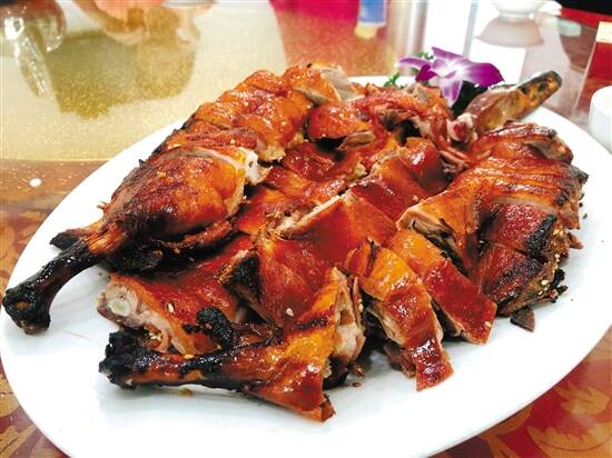 给我印象最深刻的是姜炒藤鳝。以前在广州吃的鳝鱼都是软软的,而斗门吃的却是爽脆的!这道菜的吃法还比较特别,是用姜片夹住藤鳝一起吃,姜的辣味与鳝的香味混起来,别有一番滋味;虎山金巢琵琶鸭,外脆内嫩,配合酸甜的酱汁,让人齿颊留香。