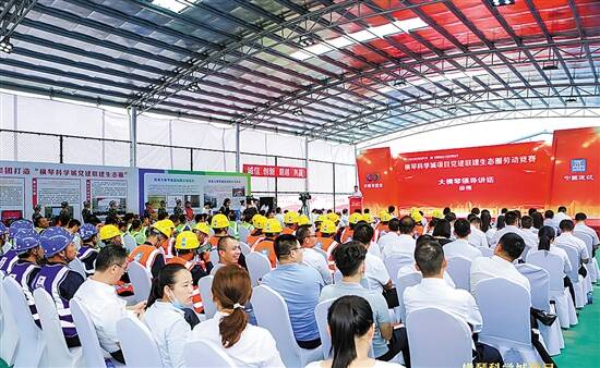 当天上午,横琴科学城重点项目党建联建生态圈劳动竞赛启动仪式在二期项目部举行。据悉,本次劳动竞赛由大横琴置业公司牵头,联合中建三局一公司、中国建筑第五工程局、中国建筑第八工程局三家项目总承包单位,以党建为引领,围绕重点项目施工进度、安全文明、资料管理等开展历时106天的劳动竞赛,以此将党建联建成效转换为推动重点项目高标准高质量建设的强大动力。