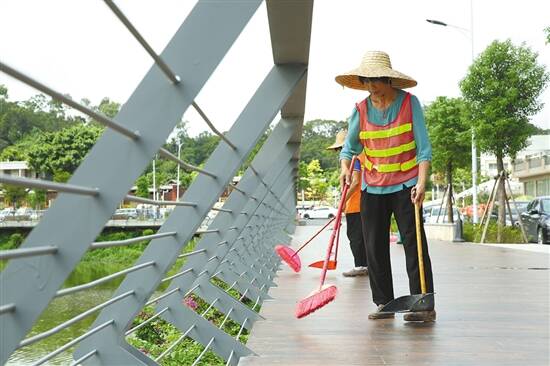 提高全村的洁净程度,最终受益的还是村民。在此过程中,大岭山镇的环卫保洁“零负担”制起到了很大作用。据大岭山城管分局环卫股股长巫国权介绍,从2016年8月份开始,全镇23个村和一个中心区的环卫保洁费用全部由镇财政承担。其中,在清扫保洁方面,按照村的道路面积、道路标准拨款和核定清洁工人数,再由各村自行招聘。“以旧飞鹅村为例,每年的环卫保洁费用要48万元。在全镇的洁净城市排名中,旧飞鹅村长期位居前五位。”