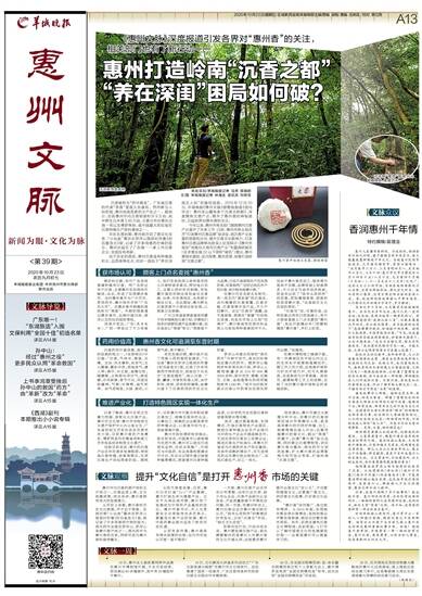 由于历史的原因,惠州沉香虽有种植面积大、品质高等优点,但却一直处于“养在深闺无人知”的尴尬局面。2019年12月20日,羊城晚报《惠州文脉》曾整版报道《国内罕见!惠州深山藏有多个沉香古树群》,深度聚焦沉香产业,揭开了惠州香的神秘面纱,引起各界对惠州香的关注。