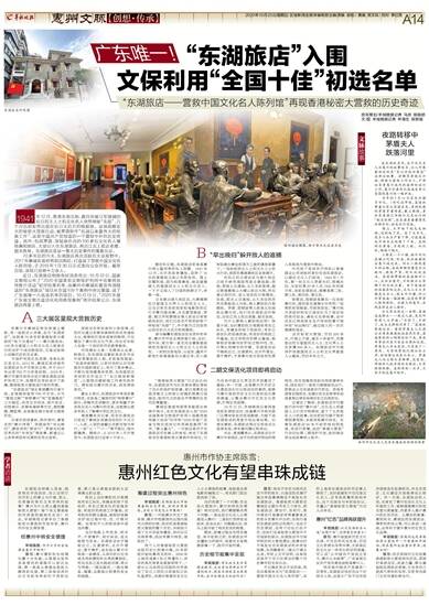 羊城晚报:茶园村也是香港秘密大营救中一个重要的中转站,现在惠阳也在整合资源,进展如何?