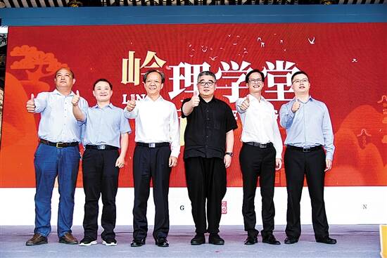 佛山市委副书记、顺德区委书记郭文海(左三),复旦大学教授钱文忠(左四)等嘉宾共同见证岭南理学堂的成立