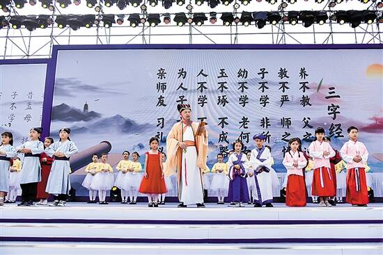扮演《三字经》作者区适子的先生带领学子们诵读