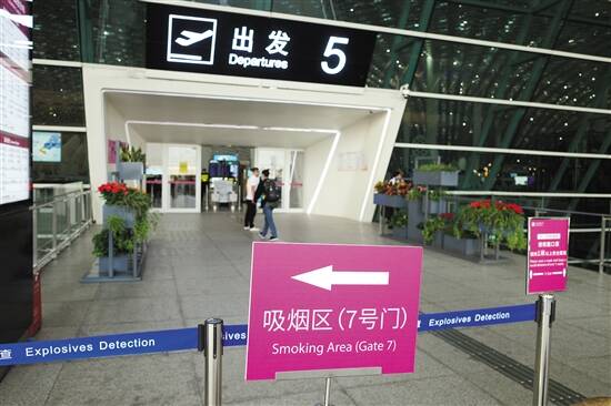 在T3航站楼70号登机口附近,笔者看到,原本的豪华吸烟室已经被很多挡板围了起来,原本的“吸烟区”字样也已经不见。有工作人员表示,该吸烟室已经关闭,未来将改变功能作为员工休息室。而在机场出发大厅门入口处的4个吸烟区也已拆除,取而代之的是航站楼外的露天吸烟区。