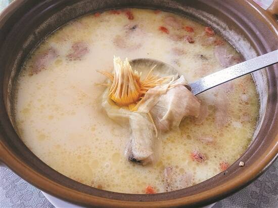 味道如其表面一般层次丰富。在众多让人垂涎欲滴的美食中,适合秋冬进补的莲花走地鸡汤尤其让人印象深刻。鸡汤中加入枸杞、无花果、椰奶煲煮,呈现出诱人的奶白色,入口有鲜香,后韵带着醇厚的奶香回甘,让人不禁立马再来一碗。作为汤料的鸡肉一点都不干柴,反而肉质弹牙,无论是直接吃还是蘸酱油都十分美味,令人赞叹不已。