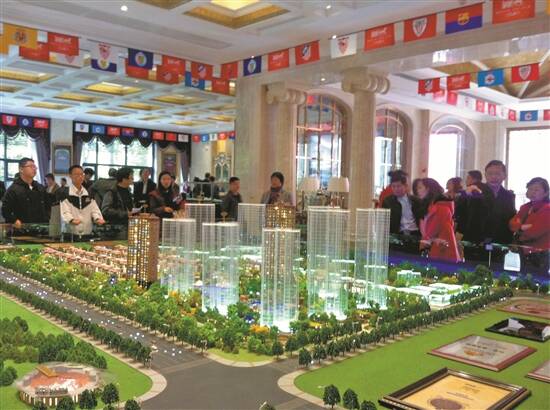 上周末,东莞中心城区的纯新项目“阅云台”营销中心正式对外开放,现场人气十足,热闹非凡。当天还有飞艇、无人机表演,现场不少人争相拍照或录视频。在营销中心的沙盘区,前来看房的人络绎不绝,销售人员忙着给客人介绍房子。据悉,阅云台项目占地约2.8万平方米,总建筑面积约9.8万平方米,容积率3.5,绿化率35%。项目主推全南向建筑面积约95平方米-140平方米三至四房,毗邻华南MALL,附近还有家汇生活广场、麦德龙等商业体;距离东莞地铁1号线汽车总站(建设中)约800米。