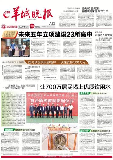 该工程计划2021年年底完工,项目完工后将加快为深圳西部人民群众提供更加优质的饮用水水源,释放水源保护区调出区域土地利用价值,将来还为深圳市、全省甚至全国提供都市型饮用水库水质保障工程建设范例。