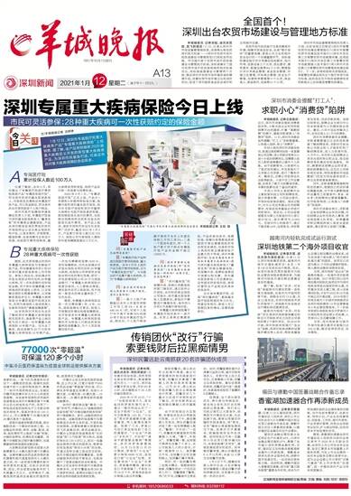 1月12日,深圳市专属医疗险重大疾病类产品“专属重大疾病保险”上线销售,据了解,该产品按照最新2020版重大疾病定义开发的新型重大疾病类产品,为深圳市民量身打造,可满足市民对重大疾病保障的急迫需求。