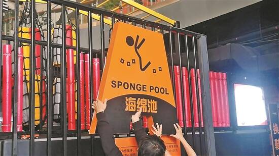 事故发生的“海绵池”为空气湃亮点项目之一,项目出口处围栏过人高,出于防护,地面、楼梯均有软质防护棉包裹、表面为胶质,虽可起到缓冲保护作用,却因表面光滑,稍有不慎人便容易摔倒。
