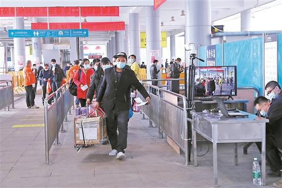 旅客都戴着口罩有序进站