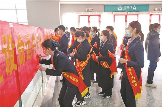 东莞东站青年志愿者签名誓师上岗