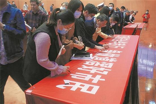 羊城晚报讯 记者文聪、通讯员袁铭鸿摄影报道:3月1日,东莞市道滘镇举行道路交通安全宣传周暨“万人签名”活动。即日起3月7日,东莞交警道滘大队将连同辖区多部门,通过“进机关”“进企业”“进学校”“进网络”“进农村”“进公共场所”,在辖区内全面开展道路交通安全宣传周活动。