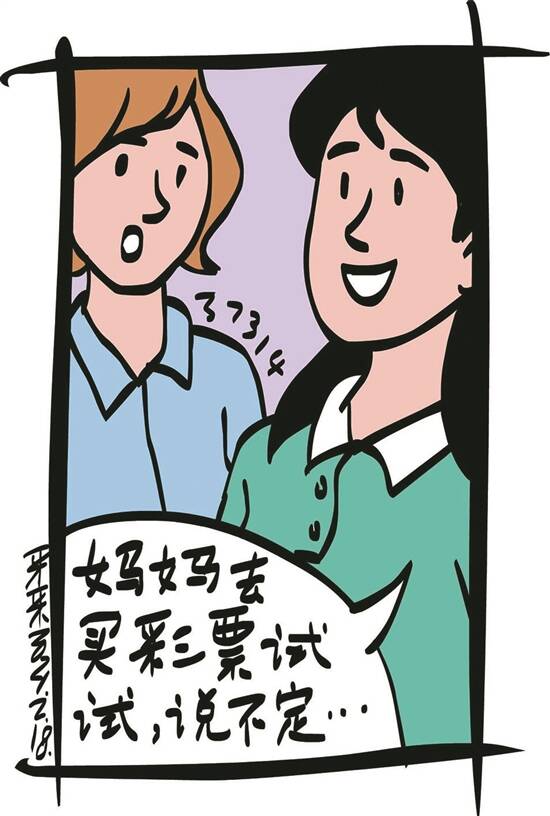 听了两人的话,女儿琪琪说:“爸爸买彩票手气不好,妈妈你去买彩票试试,说不定手气好呢。”王琴说:“妈饭店里生意忙,可没时间去买彩票。”琪琪说:“妈,你没时间可以让我爸代你买呀。”“代买,咋代买?”王琴问。琪琪说:“你选好号写在纸上,然后交给爸爸代你去买呀。”
