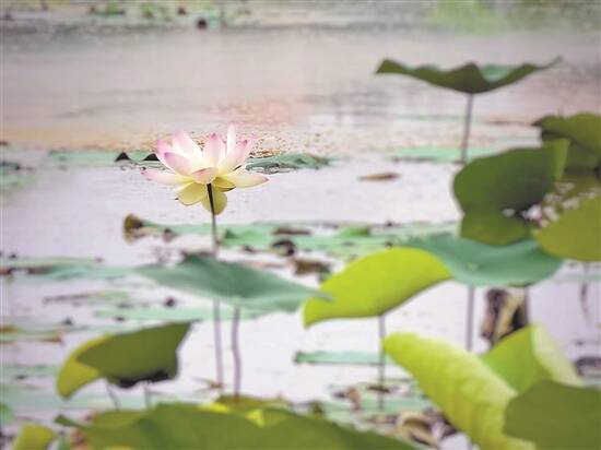 经过连月来的蓄水育苗,桥头莲湖的荷花长势喜人,苍翠茂盛的田田荷叶犹如小伞似的,铺满了整个莲湖。而且近段时间来天气晴好,气温不断攀升,再加上工作人员的精心呵护和管理,在嫩绿荷叶间悄悄冒出了朵朵亭亭玉立的荷花。有的还含苞待放,娇羞欲语;有的已经绽放娇蕊,美不胜收。一朵朵粉荷翠叶次第盛开,顾盼摇曳,掩映动人。一缕微风轻轻拂过,阵阵淡雅的荷花清香随风飘来,让漫步在莲湖畔的市民游客心旷神怡。时而还能看见几只白鹭、小鸟在荷叶间翩翩飞翔,给四月天的莲湖增添了几分迷人的色彩。