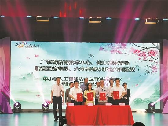 值得关注的是,本次活动现场,广东省教育技术中心、佛山市教育局、佛山市顺德区教育局、大良街道办事处签约,共同建设中小学人工智能技术应用创新试验区。大良街道全面深化教育综合改革的决策部署,探索开展了集团化办学等多项改革试点,获得了突破性进展,极大地盘活了教育资源,使大良的教育由“均衡”向“优质特色”发展迈出了关键性步伐。