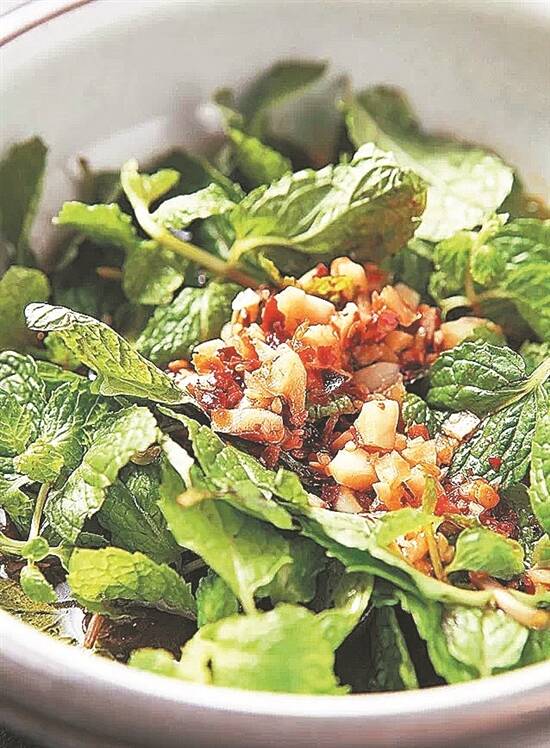 炒熟的薄荷叶卷成一团,有时候难免让人察觉它的存在,但它给美食带来的味道却是画龙点睛。