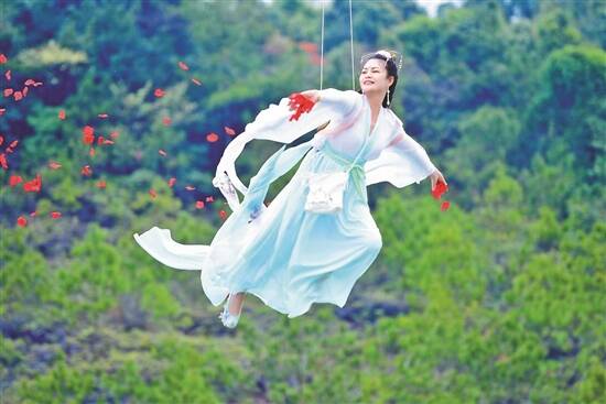 作为粤港澳地区热门旅游目的地,许多网红爆火项目都能在这里找到。飞天威亚、高空滑索、森林滑道、丛林穿越……让游客乐在其中。其中景区新添项目“飞天威亚”更是颇具新意,游客身着汉服霓裳,裙裾飘飘凌空绿林,也算圆一次“仙侠梦”。高空滑索项目穿梭于老仙岩峡谷之间,看尽碧空绿林,山色延绵,让游客体验凌空飞渡的奇特感受。在冰雪乐园里,有梦幻冰滑梯、冰雪碰碰车、唯美逼真的冰雕……扑面而来的冰爽,让游客不出远门也能感受到“北国风光”。