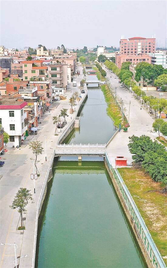 同样,北排涌整治修复工作就是对先人思想的承继和弘扬。上世纪八九十年代,北排涌两岸的居民以及工厂增多,清澈的北排涌水质开始变差,加上河堤乱搭乱种的现象突出,北排涌“水质黑得都不敢下去”。直到2019年,东莞实施乡村振兴战略,全面推进农村人居环境整治,北河涌的整治开始被提上日程。“镇领导来调研时直言‘你们村里环境都这样还不整治’。”横滘头村党总支书记张森全告诉记者,镇领导还当场表示支持横滘头村建设农村人居环境整治巡回示范村。上级的支持坚定了横滘头村委会班子改变北排涌面貌的决心。随后,在征求村民意见后,清拆两岸的窝棚果树、上马截污管网和雨污分流工程……北排涌全域综合整治工作正式打响。